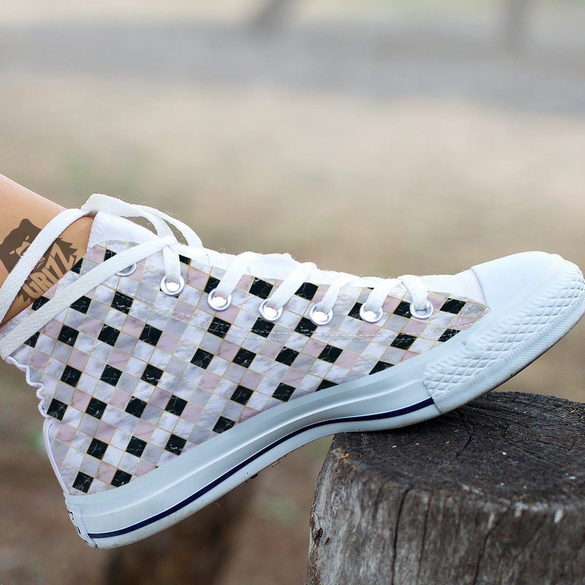 Looking for a unique shoes? Check out our Marble Argyle White Pink And Black Print White High Top Shoes at Grizzshopping. Our shoes are handcrafted to the highest quality standards that custom made for you
