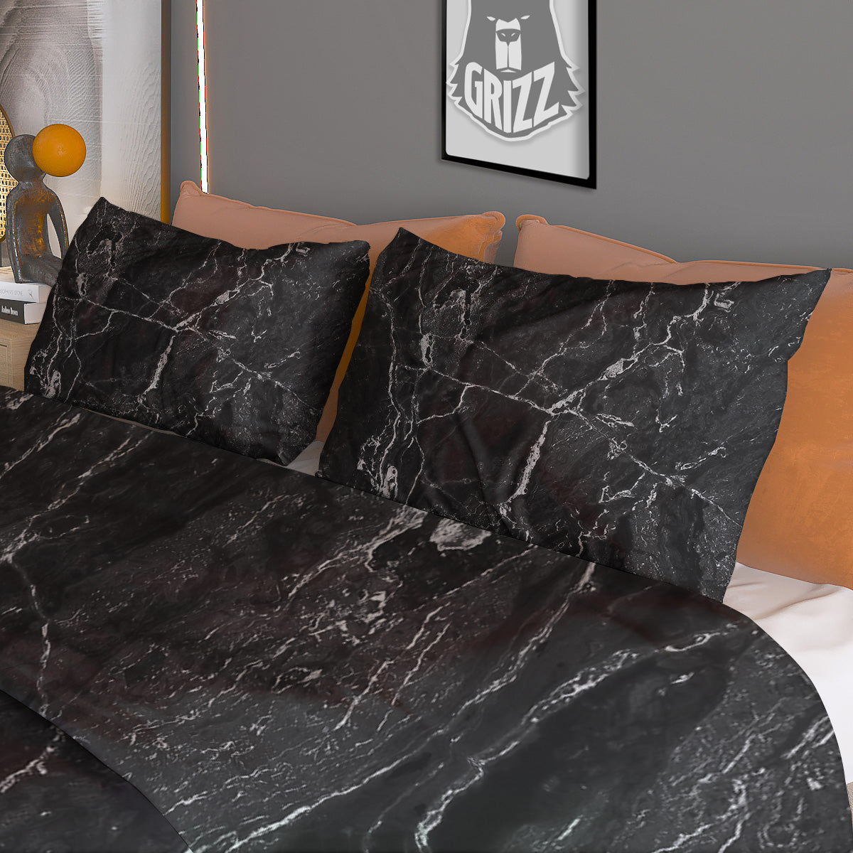Marble Dark Black Grey Print Duvet Cover Bedding Set