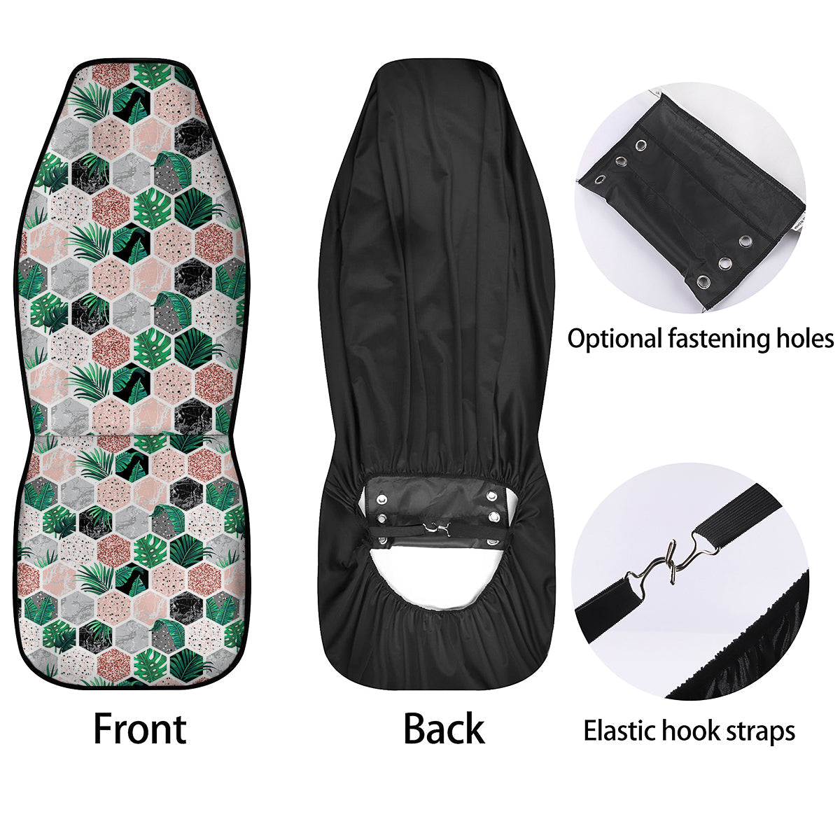 Marble Geometric And Tropical Leaves Print Car Seat Covers