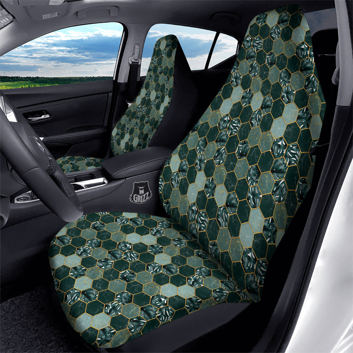 Marble Hexagon Green Tropical Print Pattern Car Seat Covers