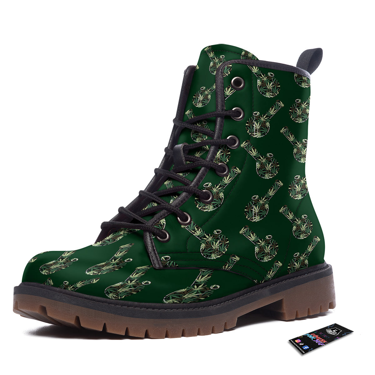 Marijuana Cannabis And Green Camo Print Pattern Work Boots