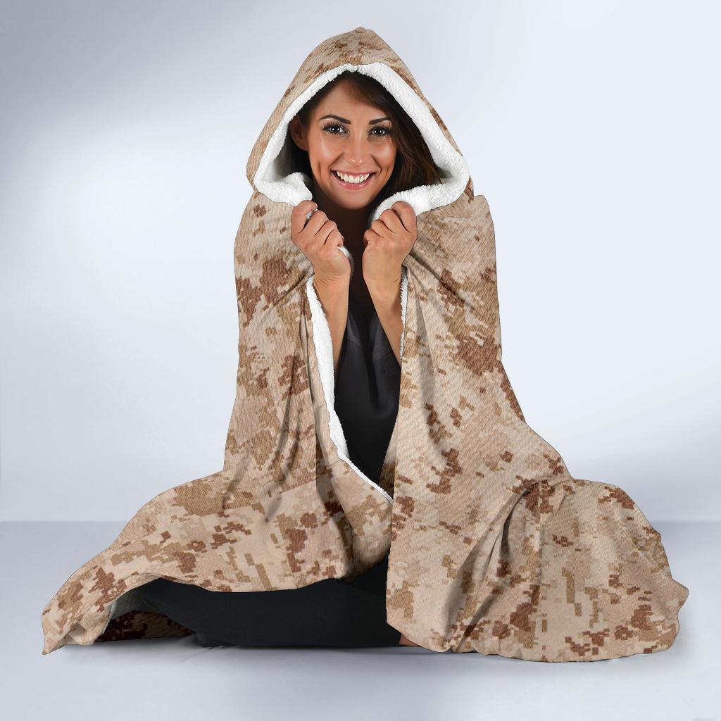 Marine Military Camouflage Camo Pattern Print Hooded Blanket