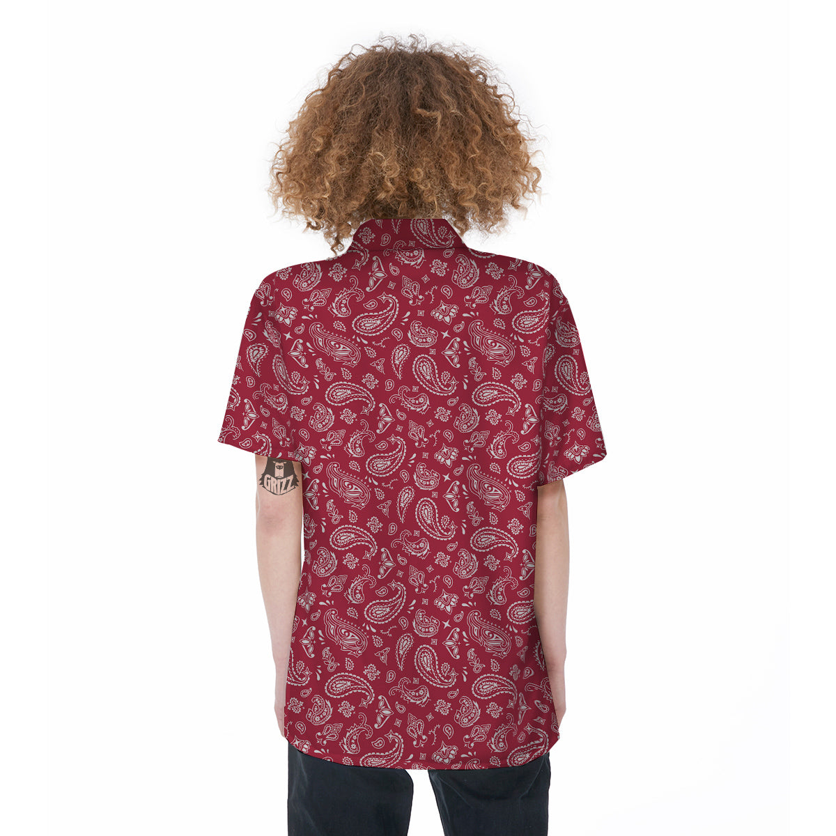 Maroon Paisley Bandana Print Women's Short Sleeve Shirts