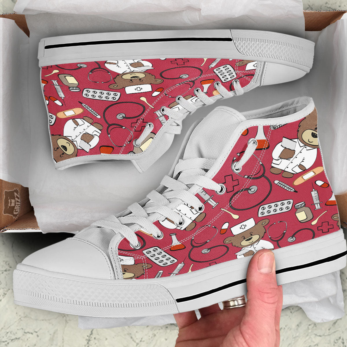 Looking for a unique shoes? Check out our Maroon Teddy Bear Nurse White High Top Shoes at Grizzshopping. Our shoes are handcrafted to the highest quality standards that custom made for you