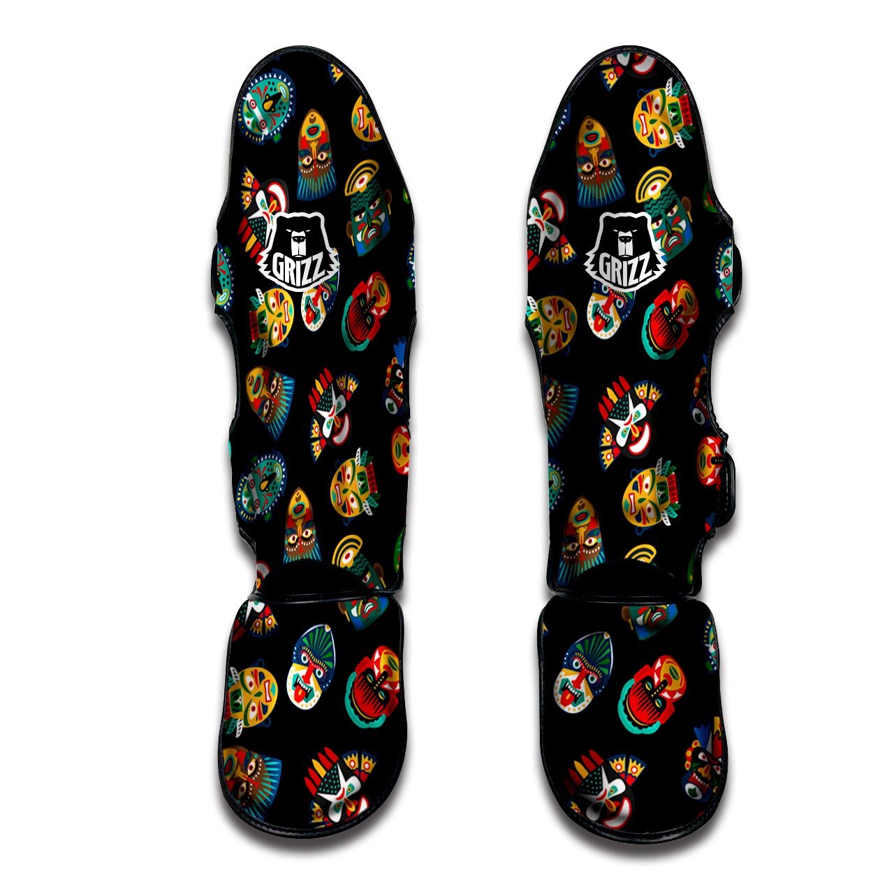 Mask Tribal Tiki Print Pattern Muay Thai Shin Guards