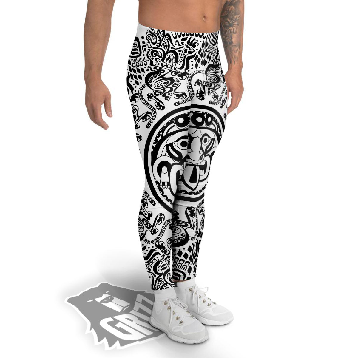 Looking for a unique legging? Check out our Maya Calendar White And Black Print Men's Leggings at Grizzshopping. Our leggings are handcrafted to the highest quality standards that custom made for you