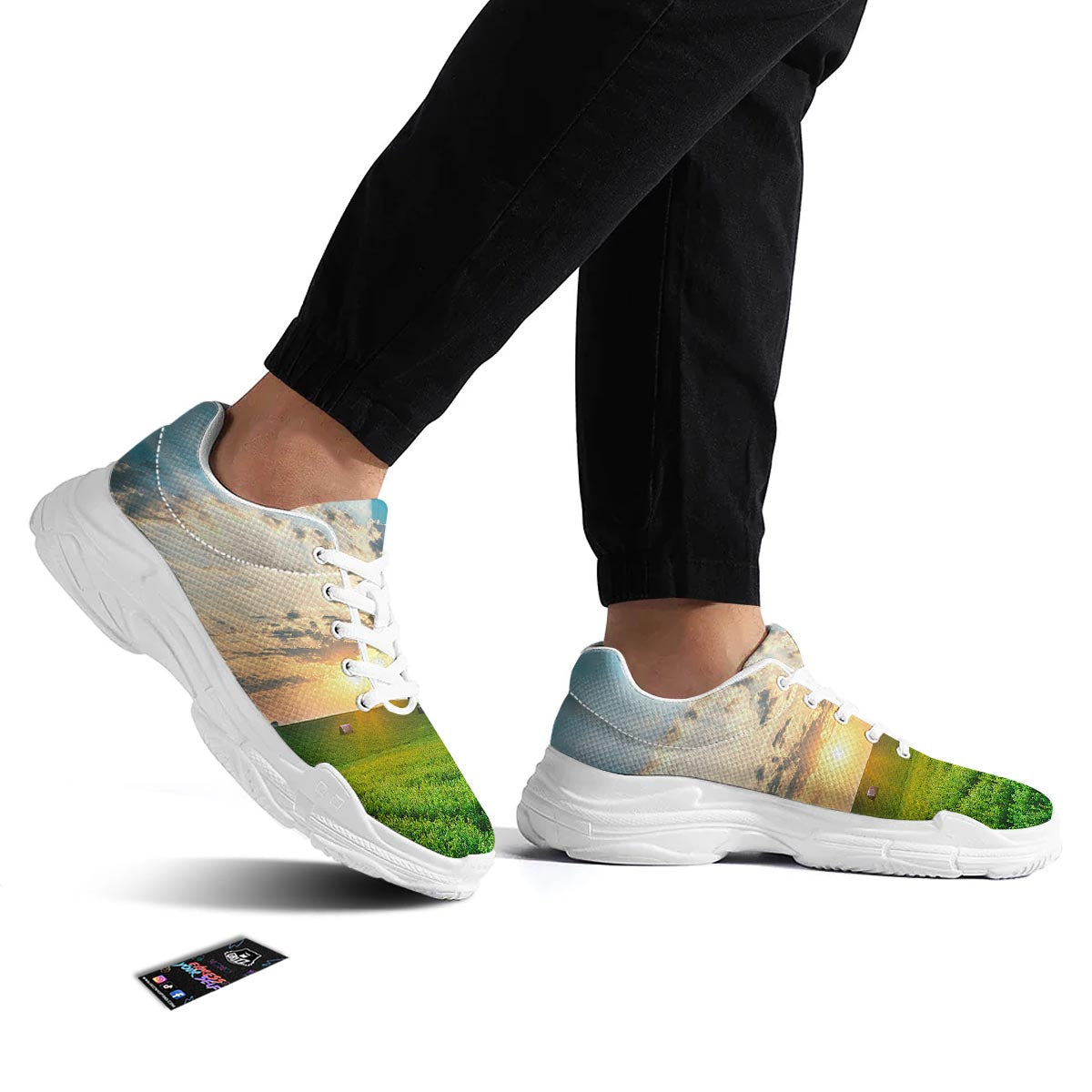 Looking for unique chunky shoes? Check out our Meadow Sunrise Print White Chunky Shoes at Grizzshopping. Our chunky shoes are handcrafted to the highest quality standards that custom made for you