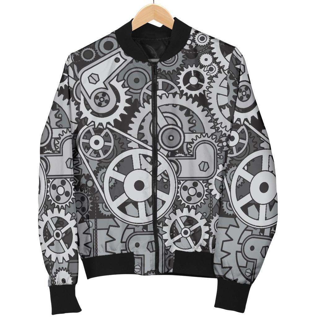 Mechanic Print Pattern Women Casual Bomber Jacket