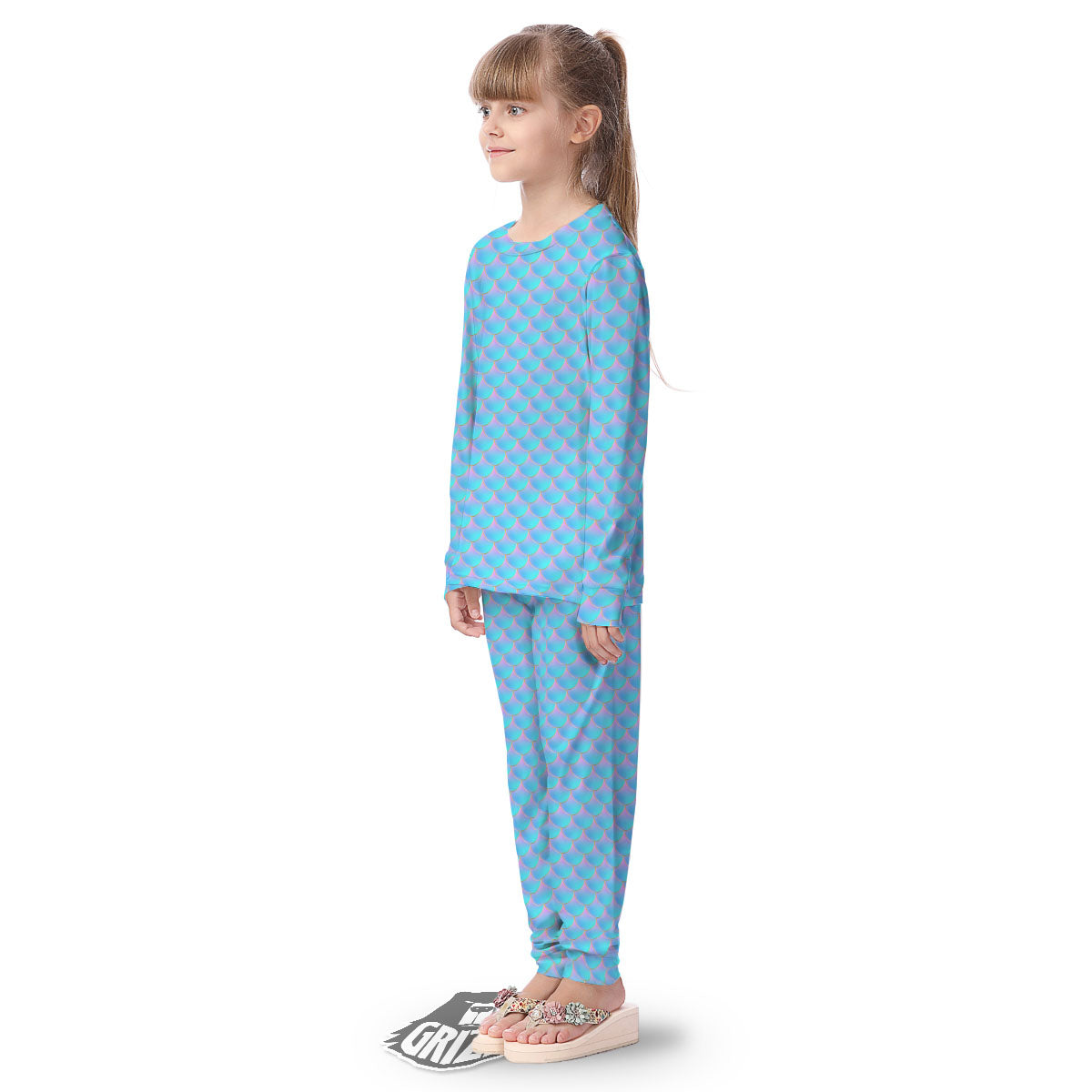 Mermaid Scales Blue Neon Print Pattern Kid's Pajamas