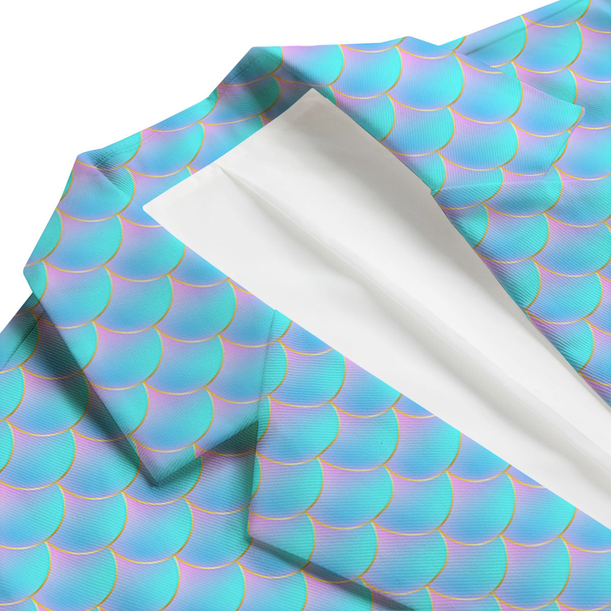 Mermaid Scales Blue Neon Print Pattern Men's Blazer