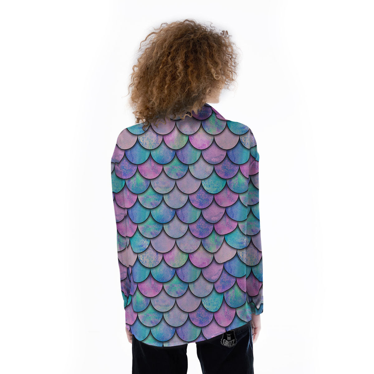 Mermaid Scales Pink And Teal Print Pattern Women's Long Sleeve Shirts