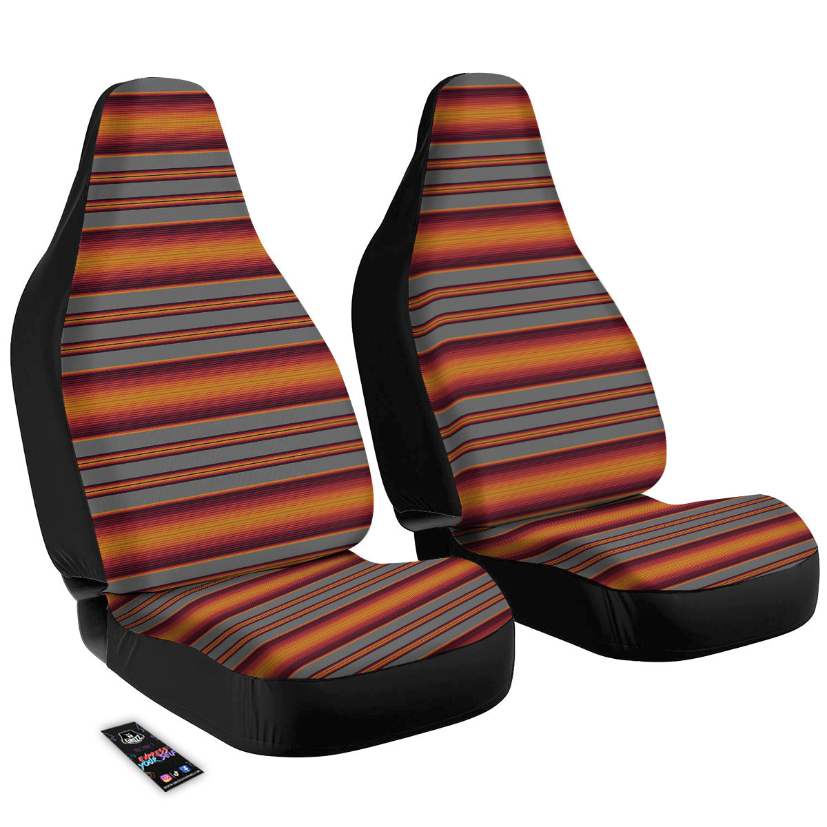 Mexican Serape Grey Orange Print Car Seat Covers
