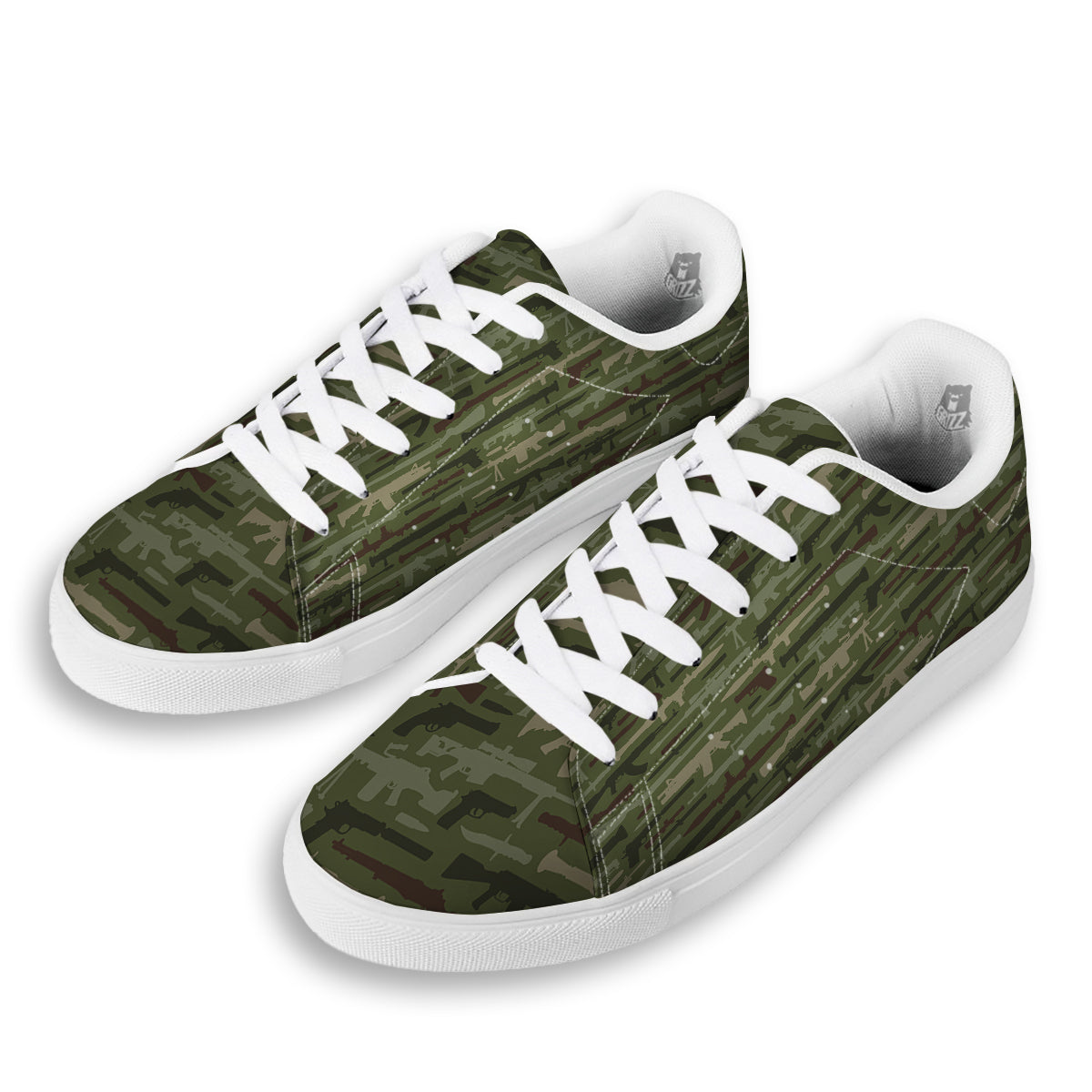 Looking for a unique low top shoes? Check out our Military Gun Camo Print White Low Top Sneakers at Grizzshopping. Our low top sneakers are handcrafted to the highest quality standards that custom made for you