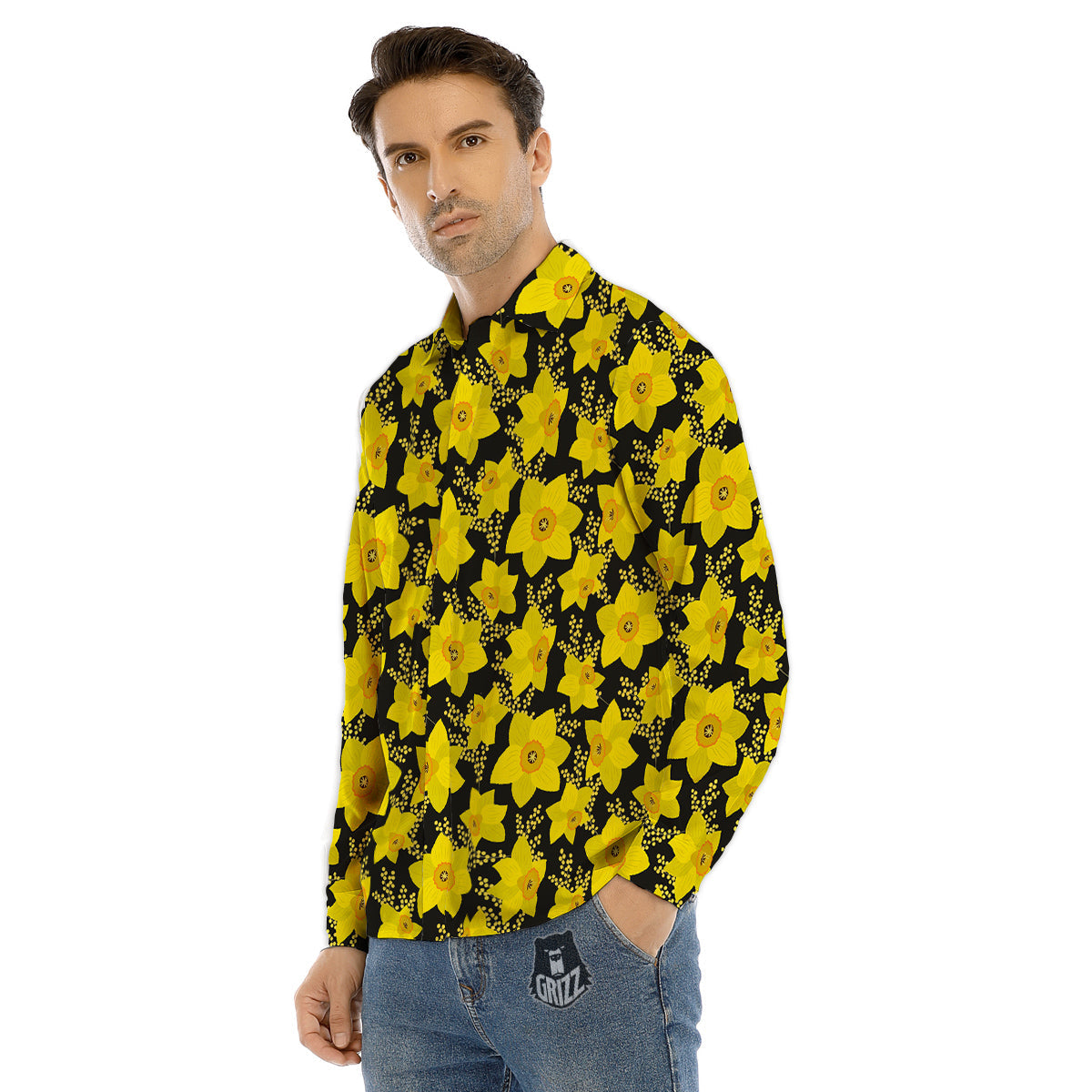 Mimosa And Daffodil Print Pattern Men's Dress Shirts