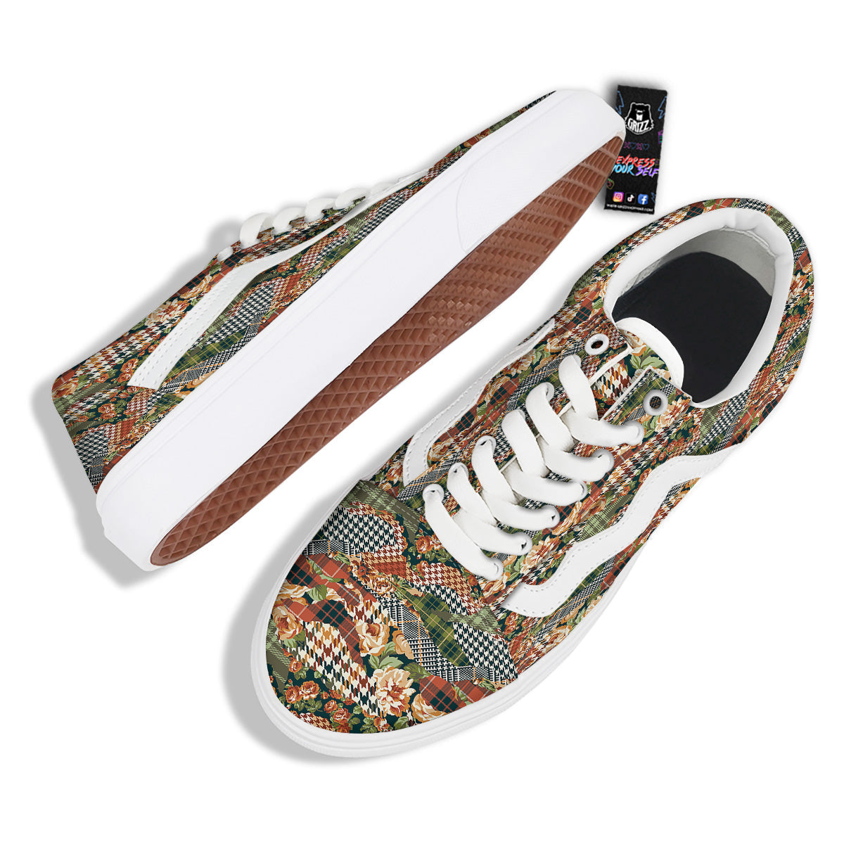 Mix Houndstooth Tartan Print Pattern Skate Shoes