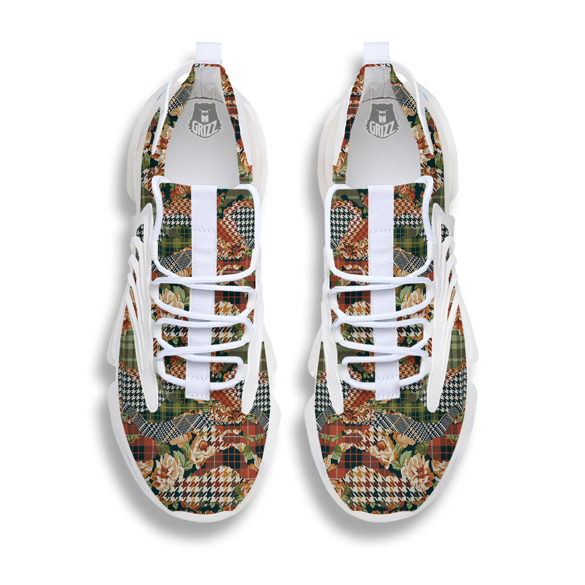 Mix Houndstooth Tartan Print Pattern White Gym Shoes