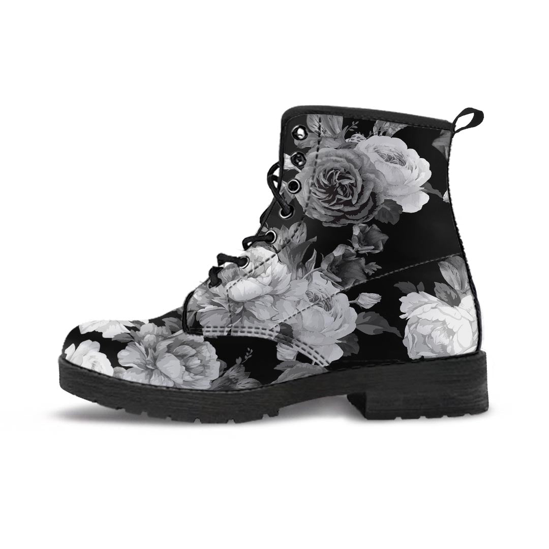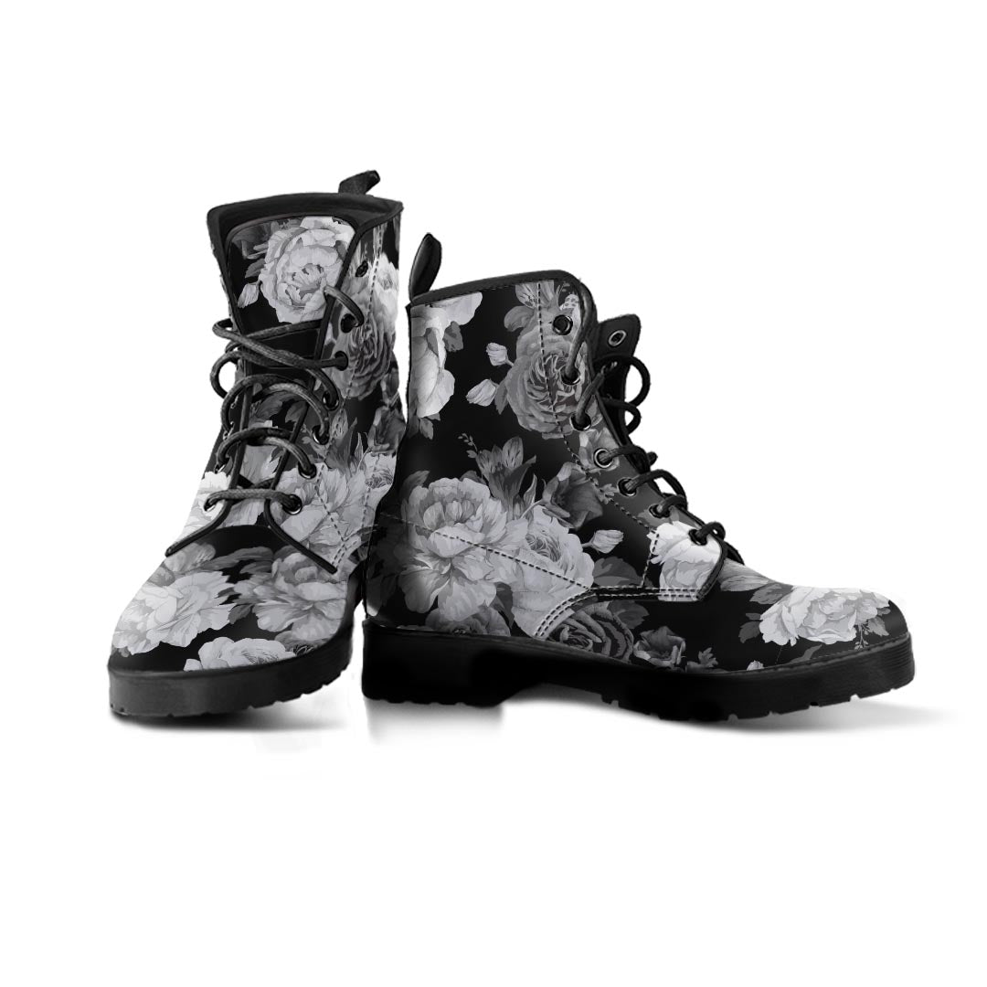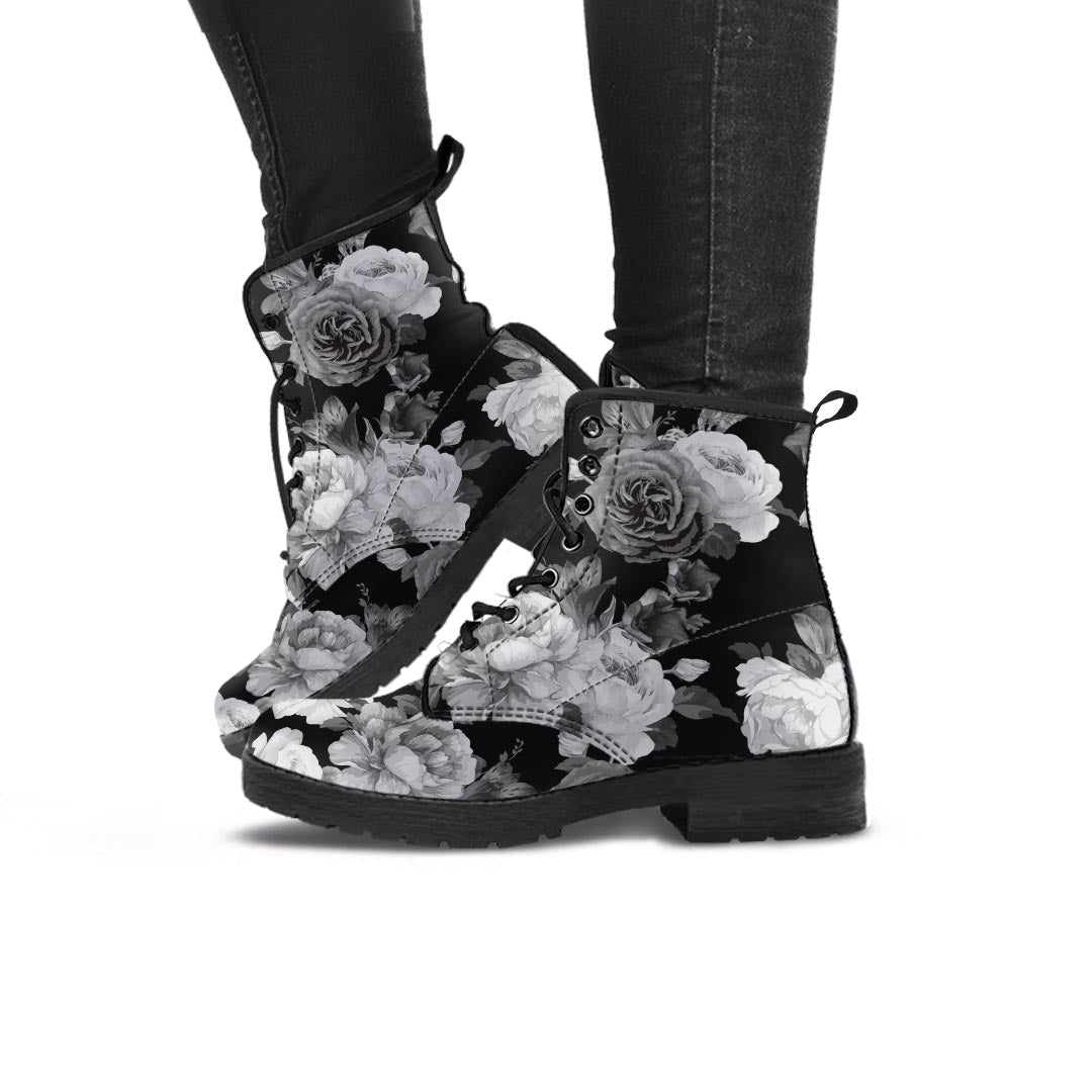 Monochrome Rose Floral Women's Boots