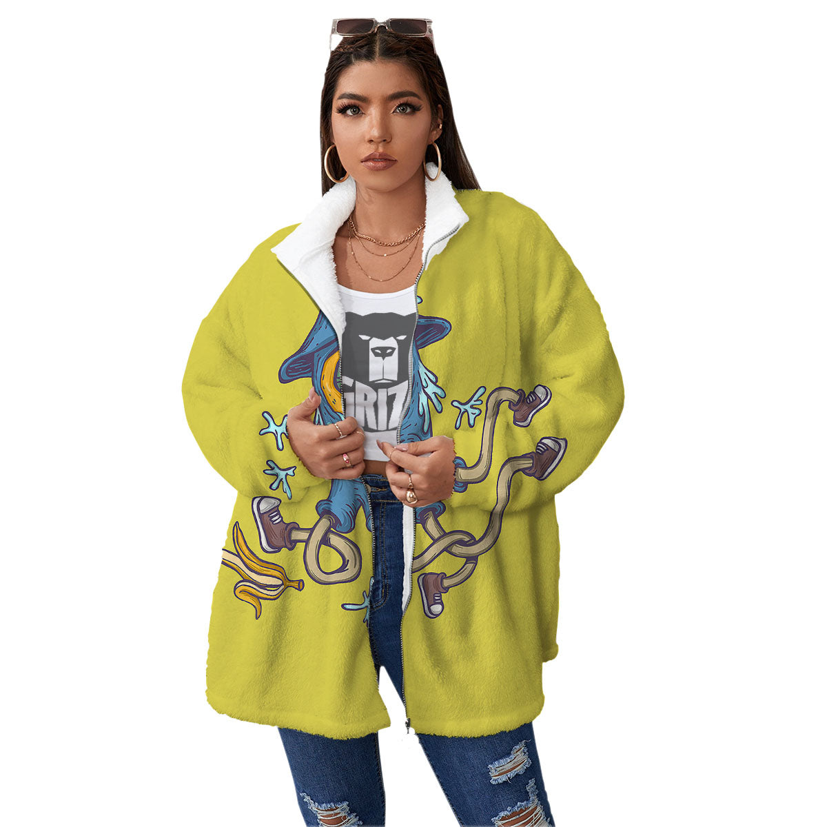 Monster Graffiti Characters Print Women's Sherpa Jacket