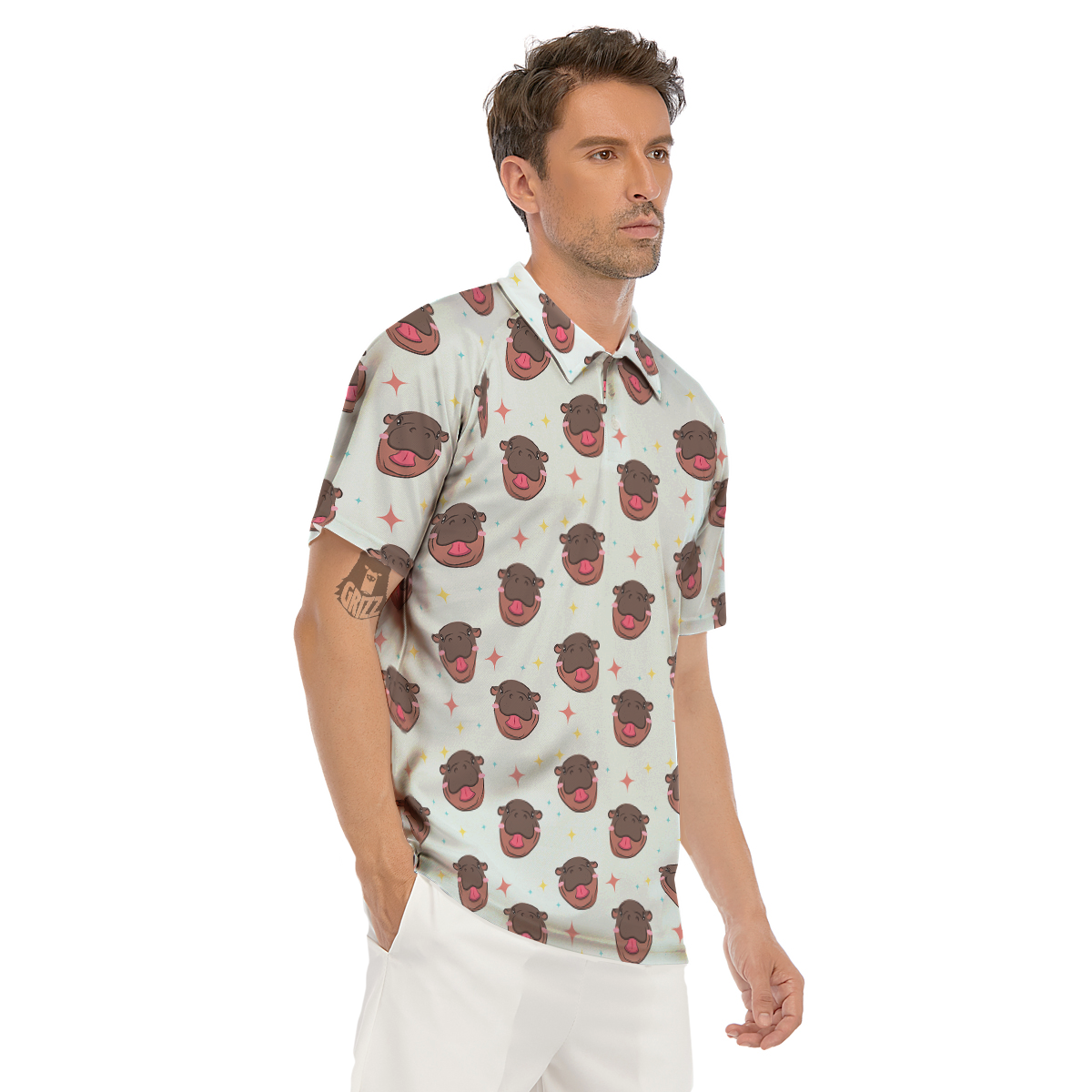Moo Deng Hippo Smiling Men's Golf Shirts