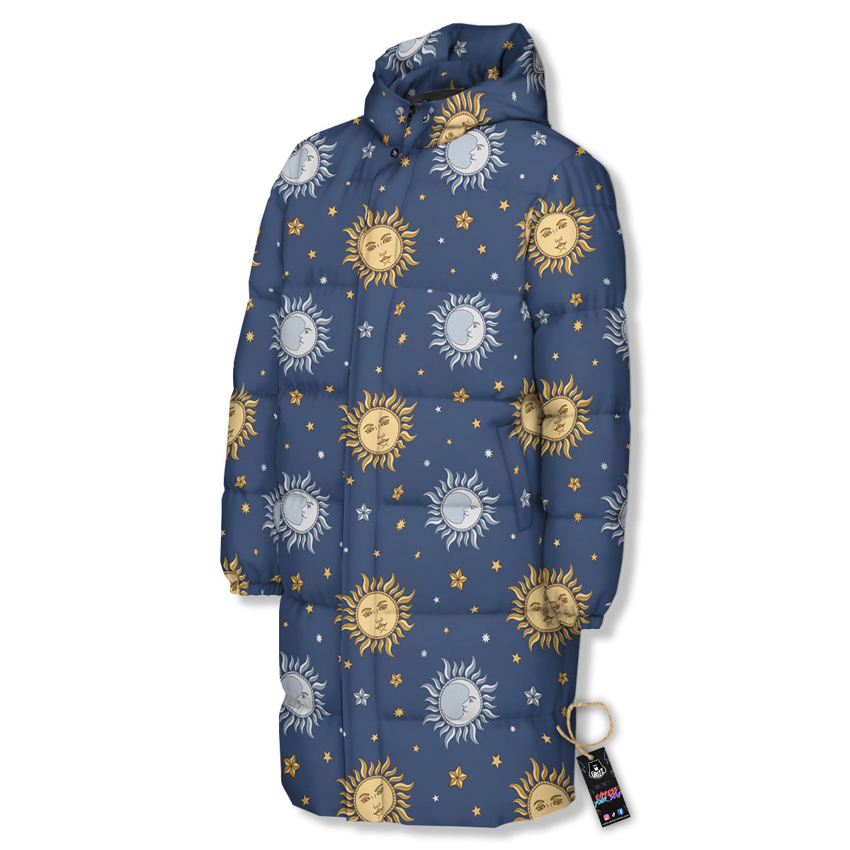 Moon And Vintage Sun Print Pattern Long Down Jacket