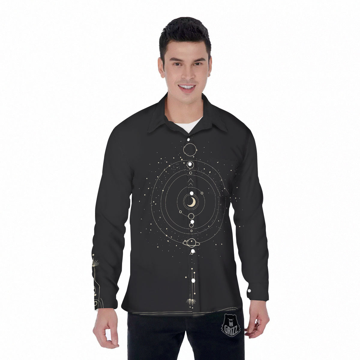 Moon Phase Galaxy Print Men's Long Sleeve Shirts