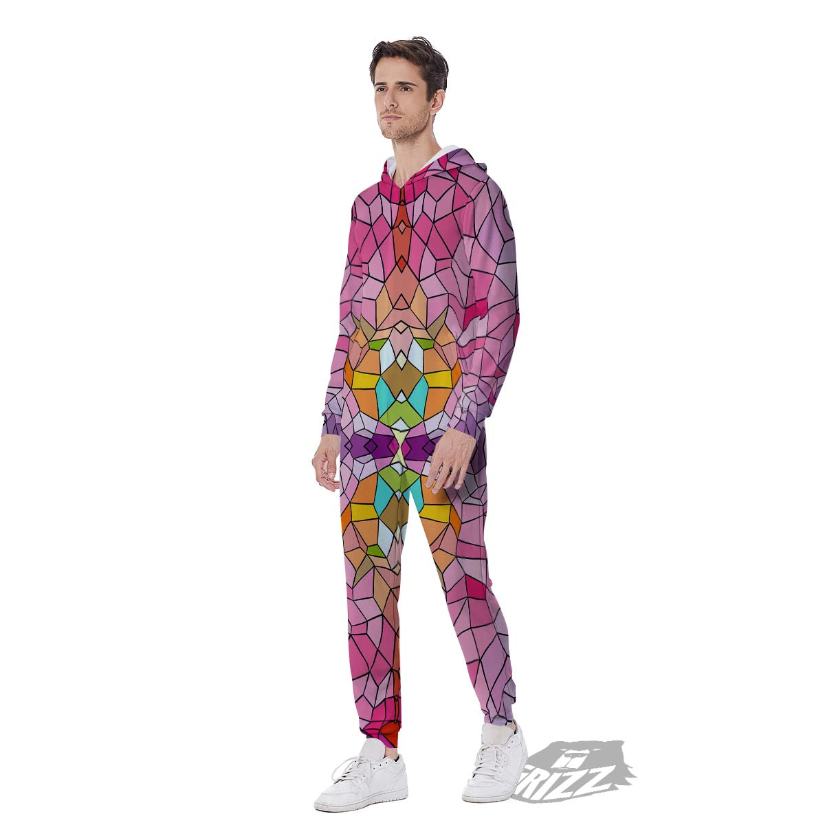 Mosaic Stained Glass Print Pattern Men's Jumpsuit