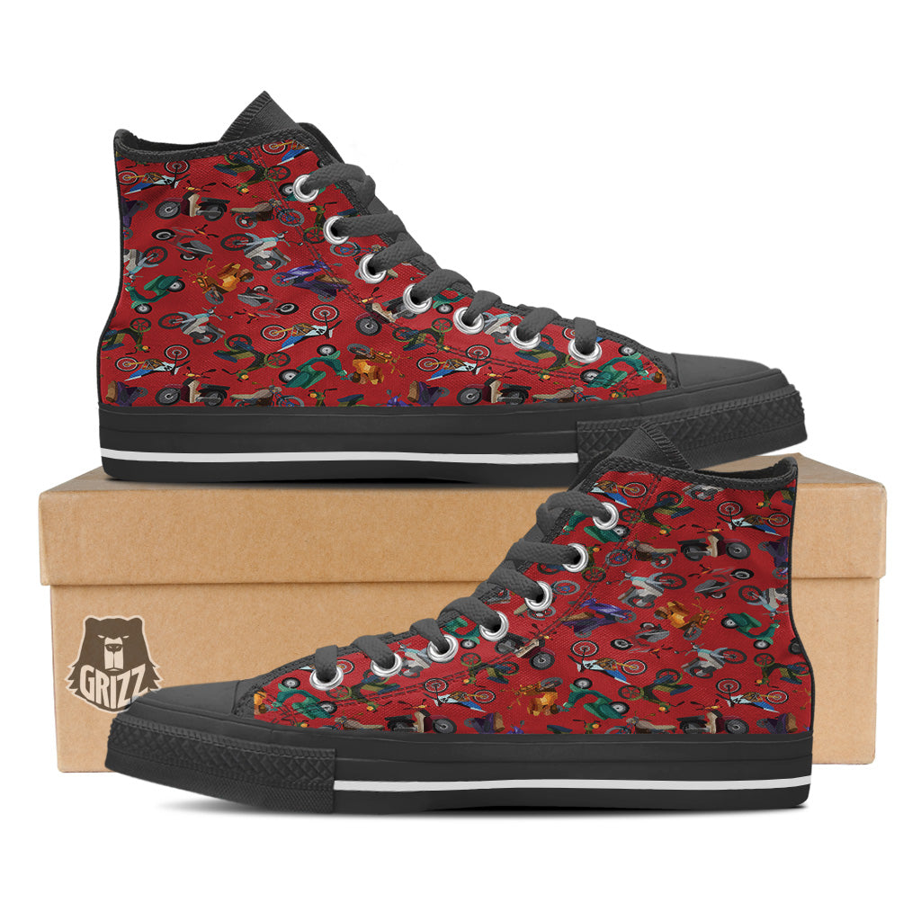 Motorcycle And Red Print Pattern Black High Top Shoes