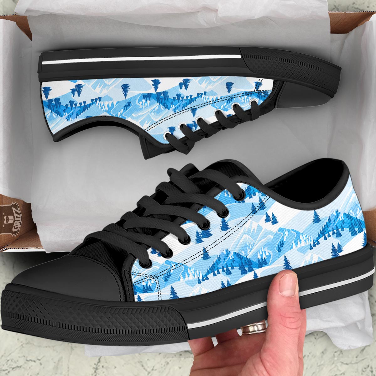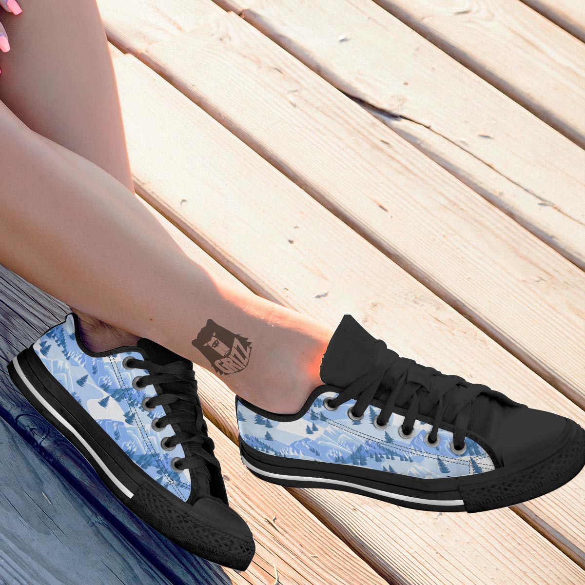 Mountain Skiing Print Pattern Black Low Top Shoes