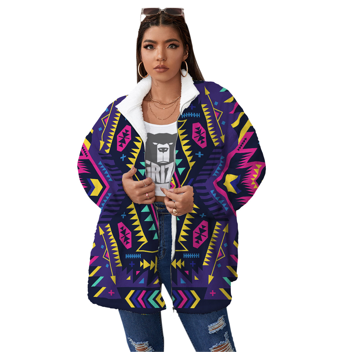 Multicolor Tribal Navajo Geometric Print Women's Sherpa Jacket