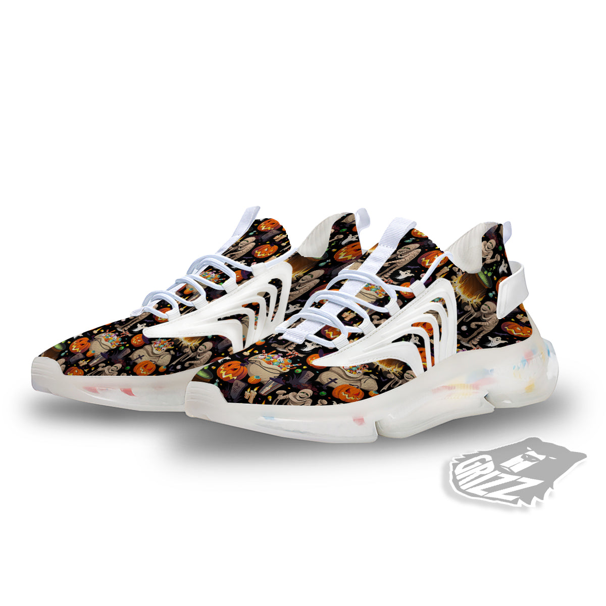 Mummy And Pumpkins Halloween Print Pattern White Gym Shoes
