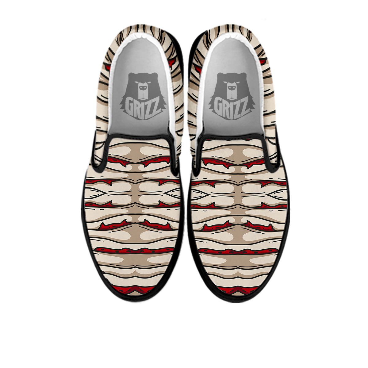 Mummy Bandage Print Pattern Black Slip On Shoes