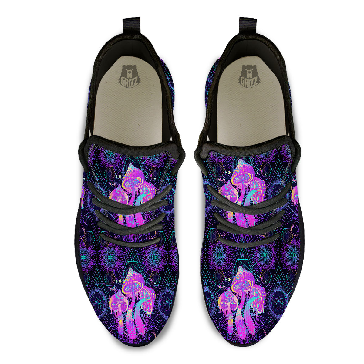 Mushroom Psychedelic Print Pattern Black Athletic Shoes