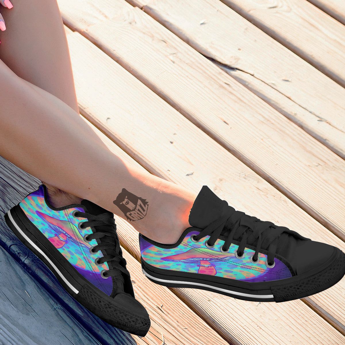 Mushrooms Psychedelic Print Black Low Top Shoes