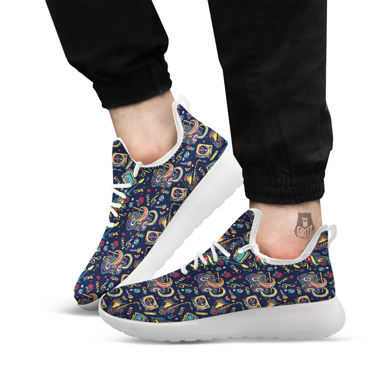 Musical Instruments Print Pattern White Athletic Shoes