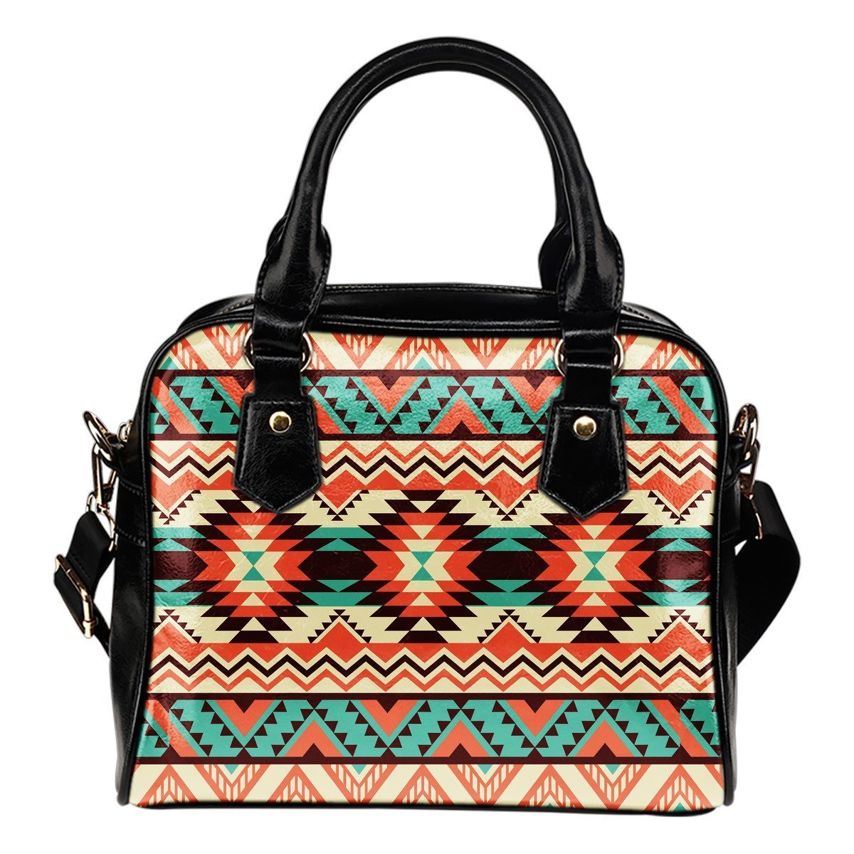 Native American Navajo Indians Aztec Tribal Print Leather Shoulder Handbag