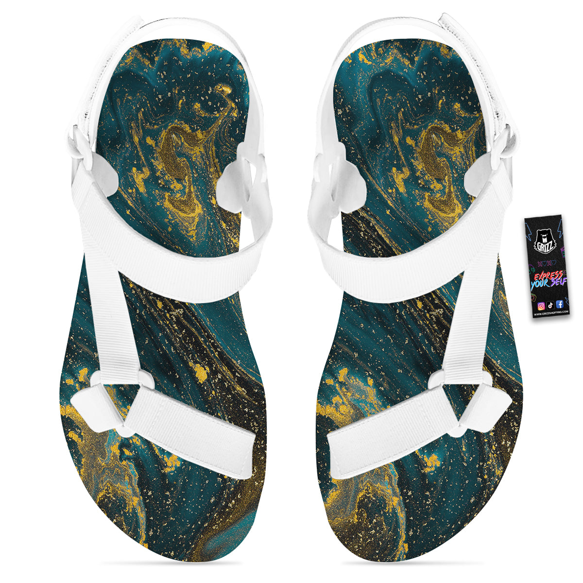 Looking for unique toe sandals? Check out our Natural Luxury Blue And Gold Marble Print White Open Toe Sandals at Grizzshopping. Our toe sandals are handcrafted to the highest quality standards that custom made for you