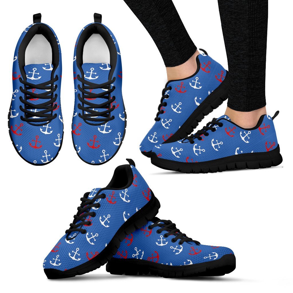 Nautical Anchor Pattern Print Black Sneaker Shoes For Men Women