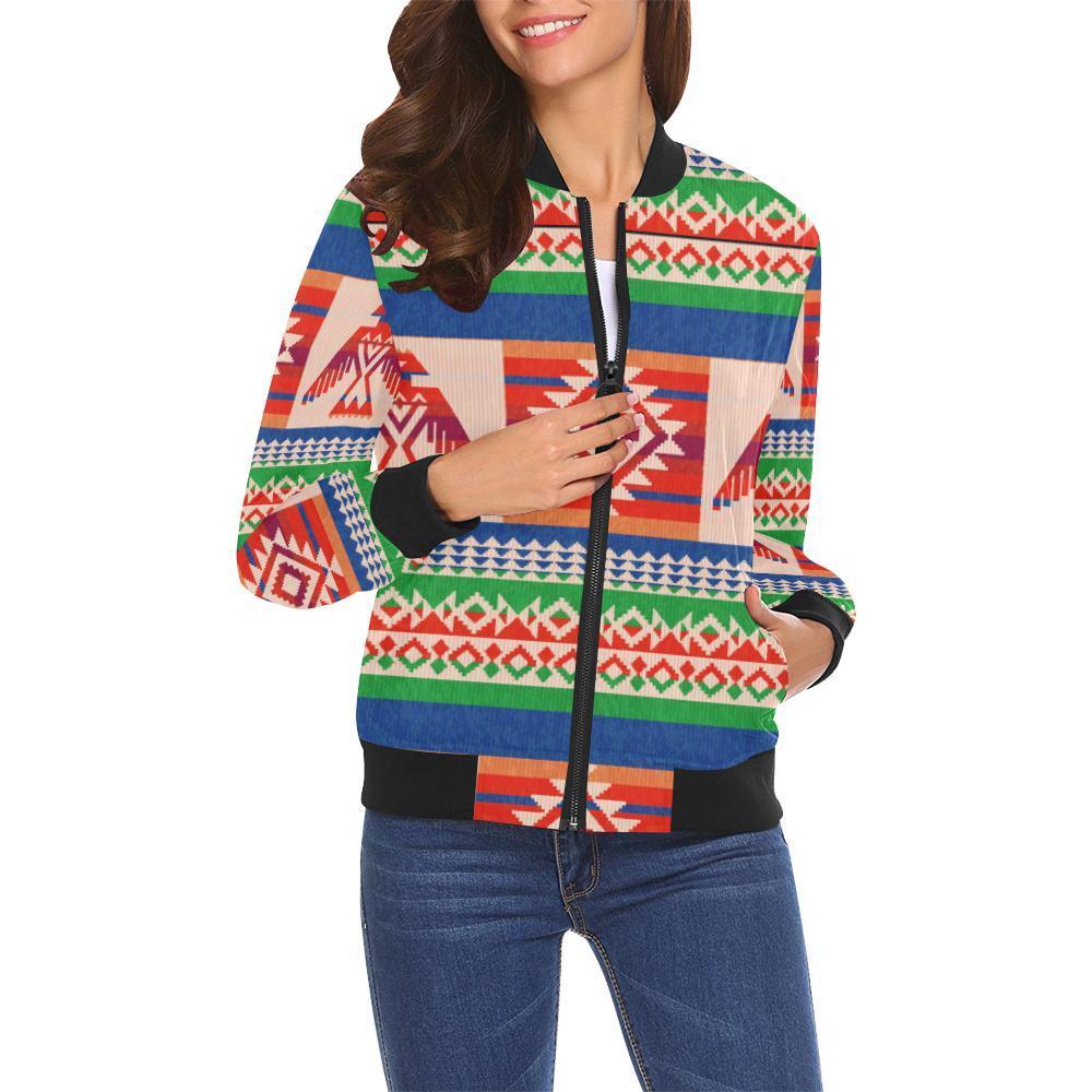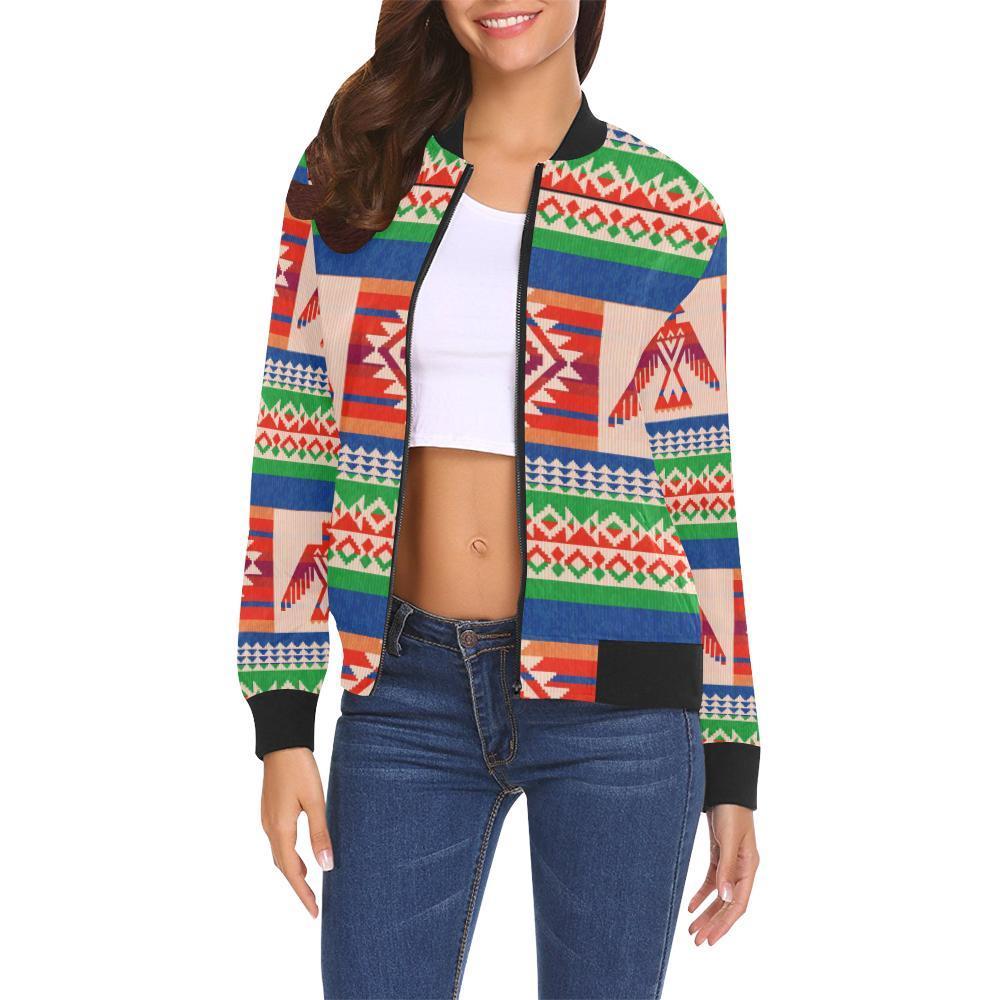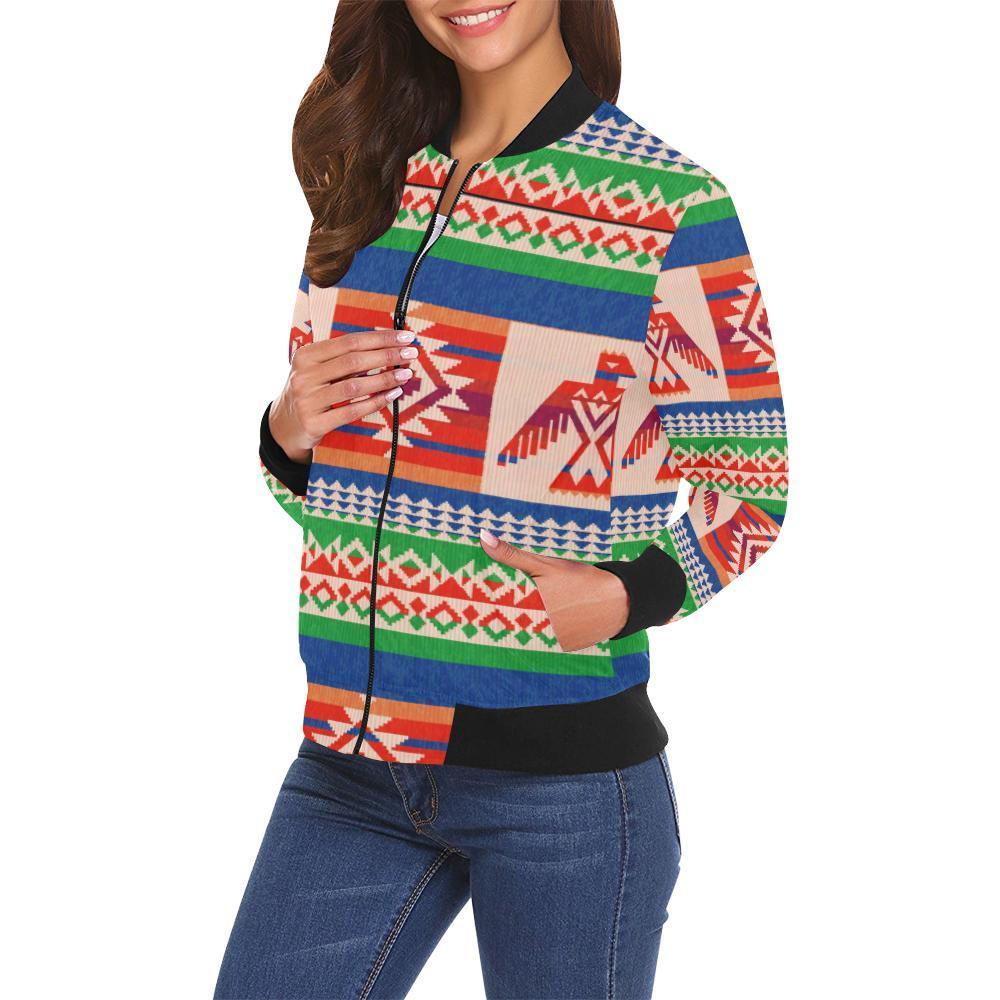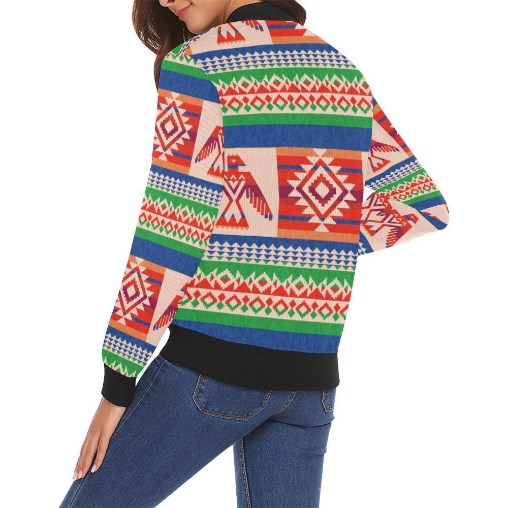 Navajo Aztec Tribal Native Indians American Print Women Casual Bomber Jacket
