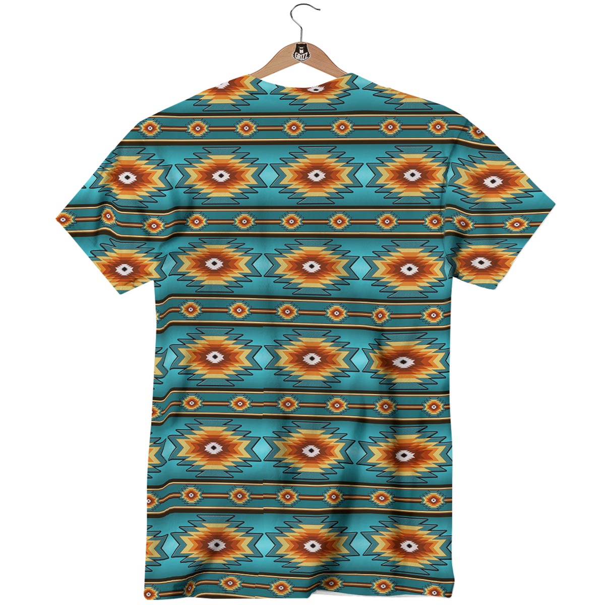 Navajo Teal Southwestern Print Pattern T-Shirt