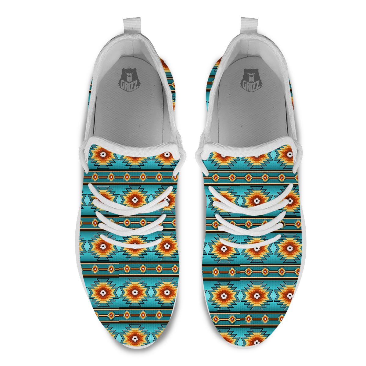 Navajo Teal Southwestern Print Pattern White Athletic Shoes