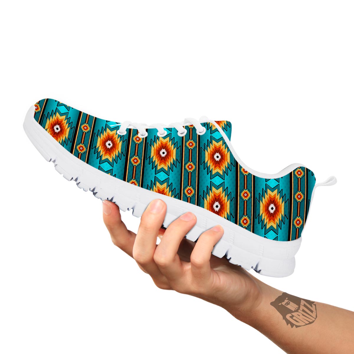 Navajo Teal Southwestern Print Pattern White Sneaker