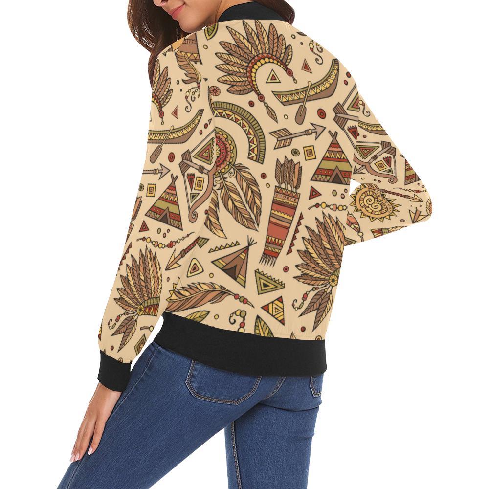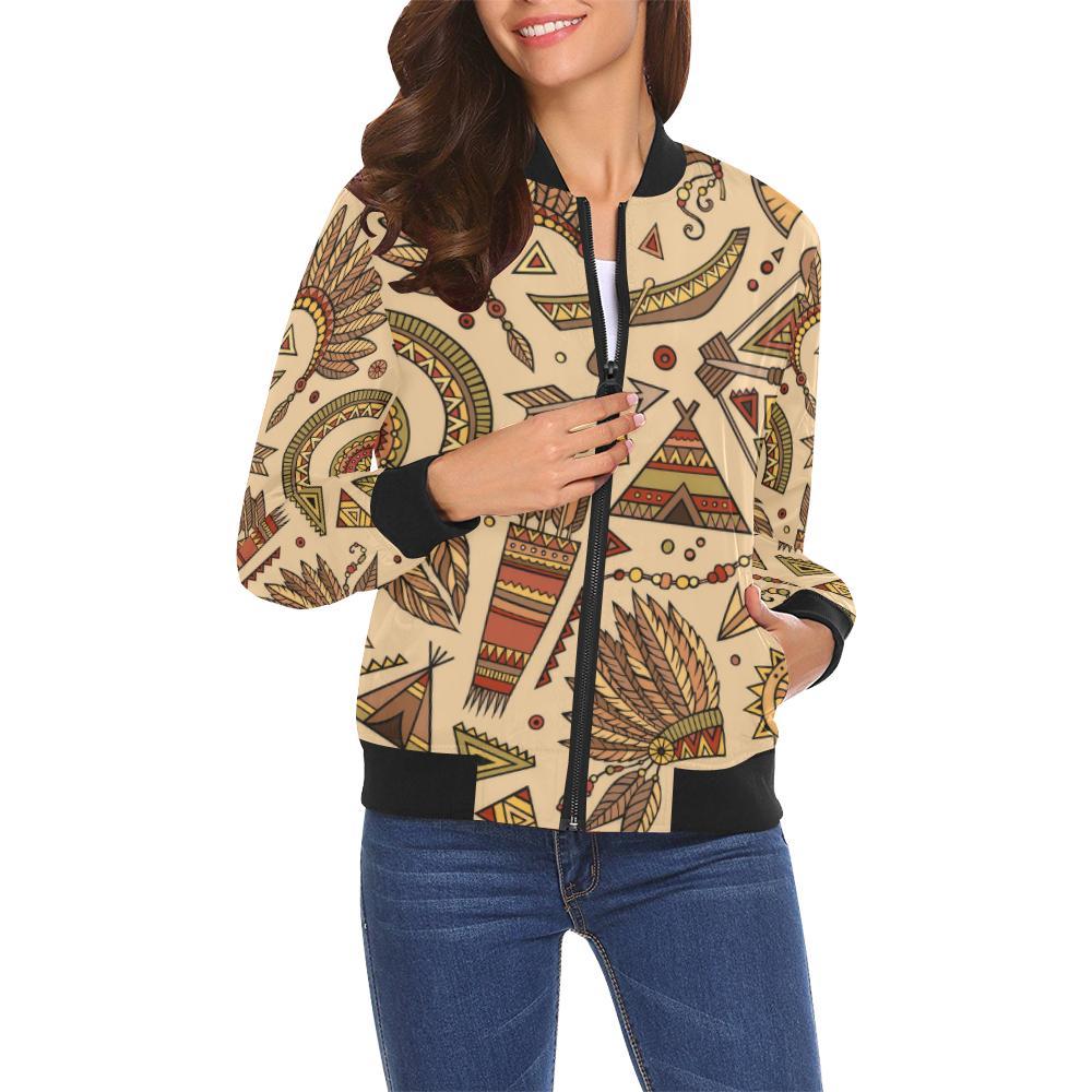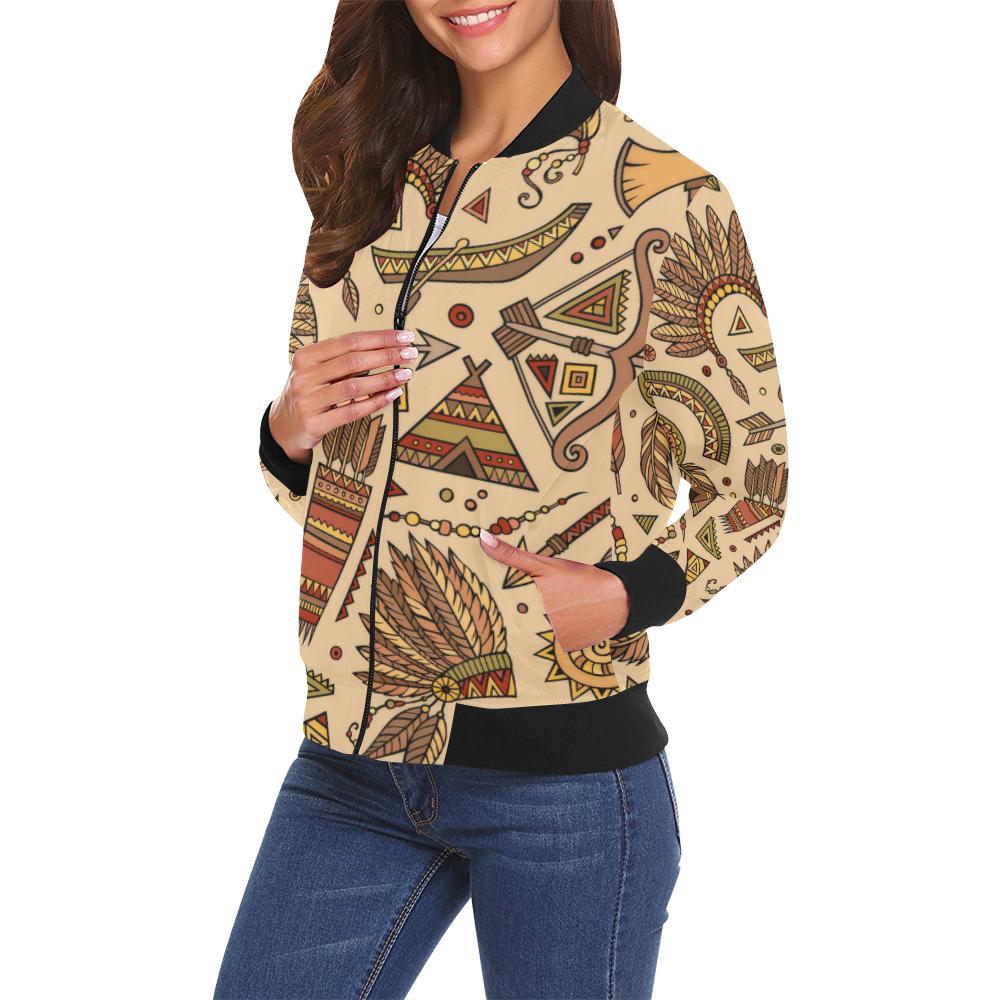Navajo Tribal Aztec Native Indians American Print Women Casual Bomber Jacket