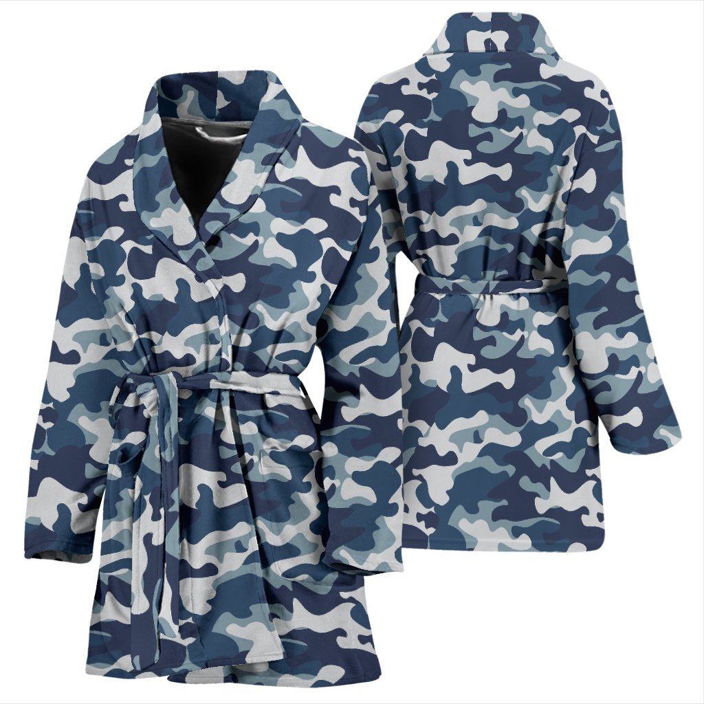 Navy Military Camouflage Camo Pattern Print Women Long Robe