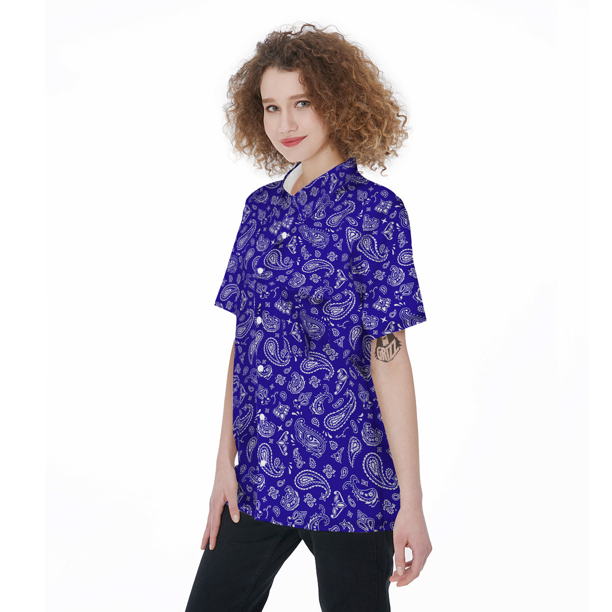 Navy Paisley Bandana Print Women's Short Sleeve Shirts