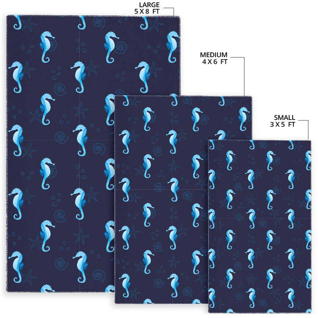 Navy Seahorse Pattern Print Floor Mat