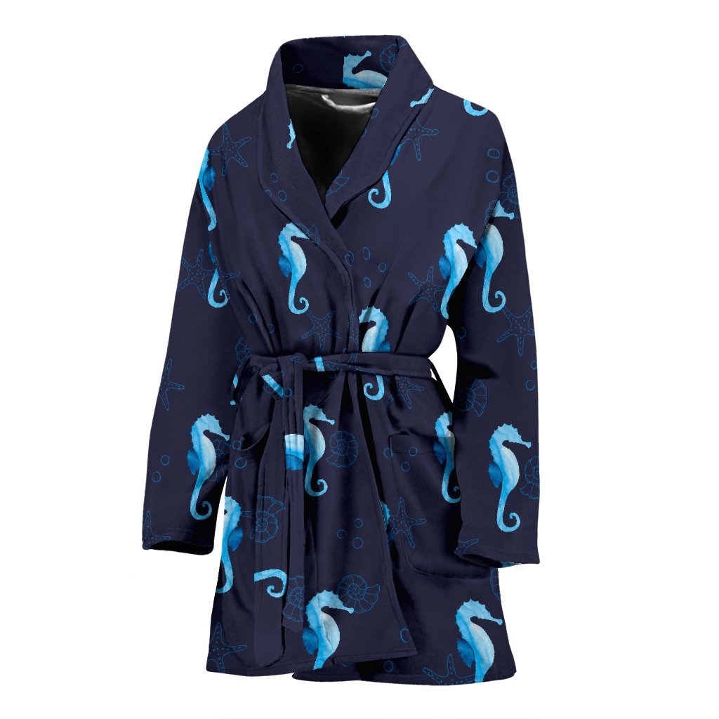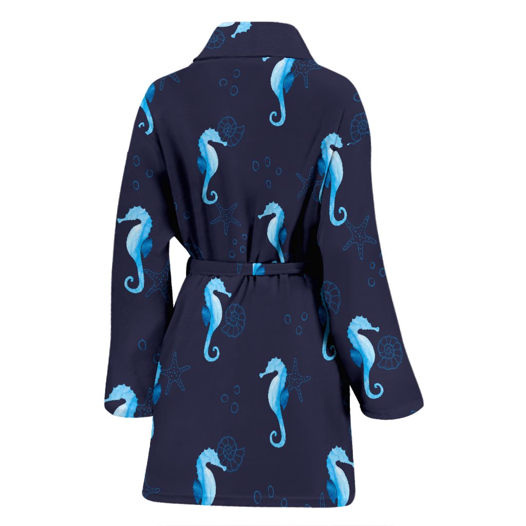 Navy Seahorse Pattern Print Women Long Robe