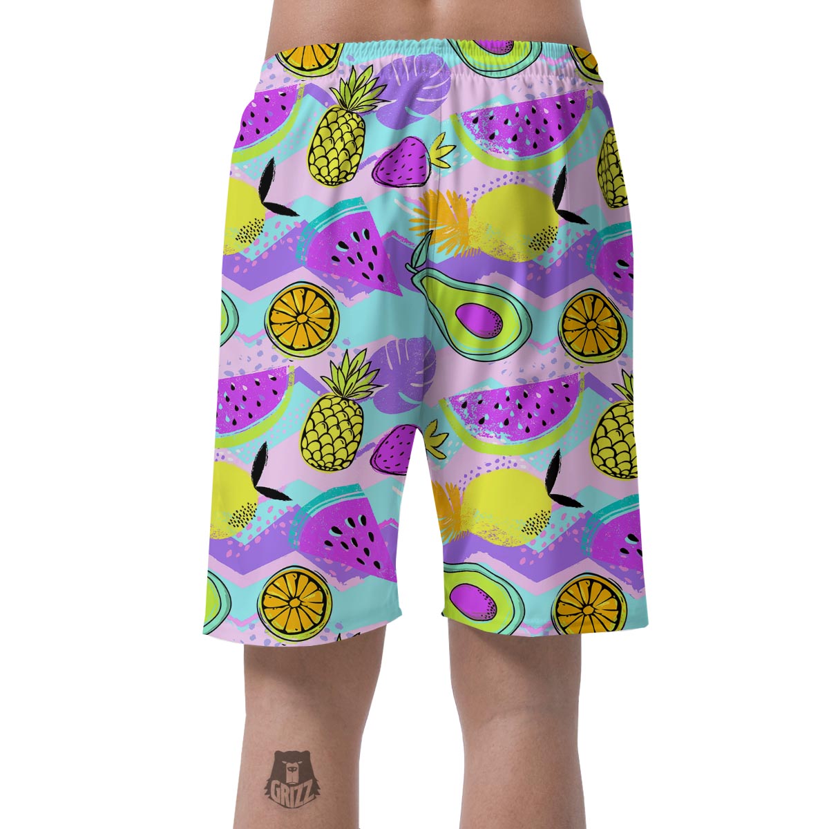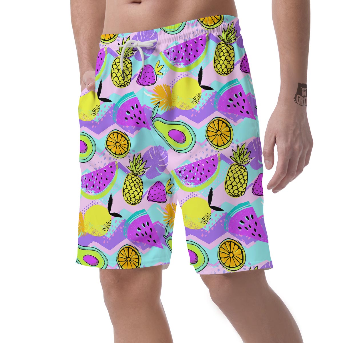 Neon Mix Fruit Pineapple Hawaiian Print Men's Shorts