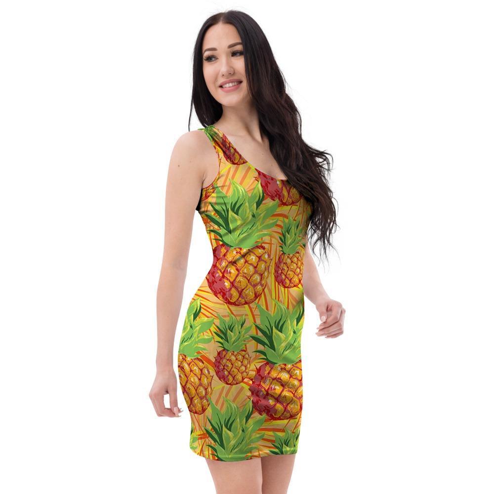 Looking for a unique bodycon dress? Check out our Neon Yellow Pineapple Hawaiian Print Bodycon Dress at Grizzshopping. Our bodycon dress are handcrafted to the highest quality standards that custom made for you