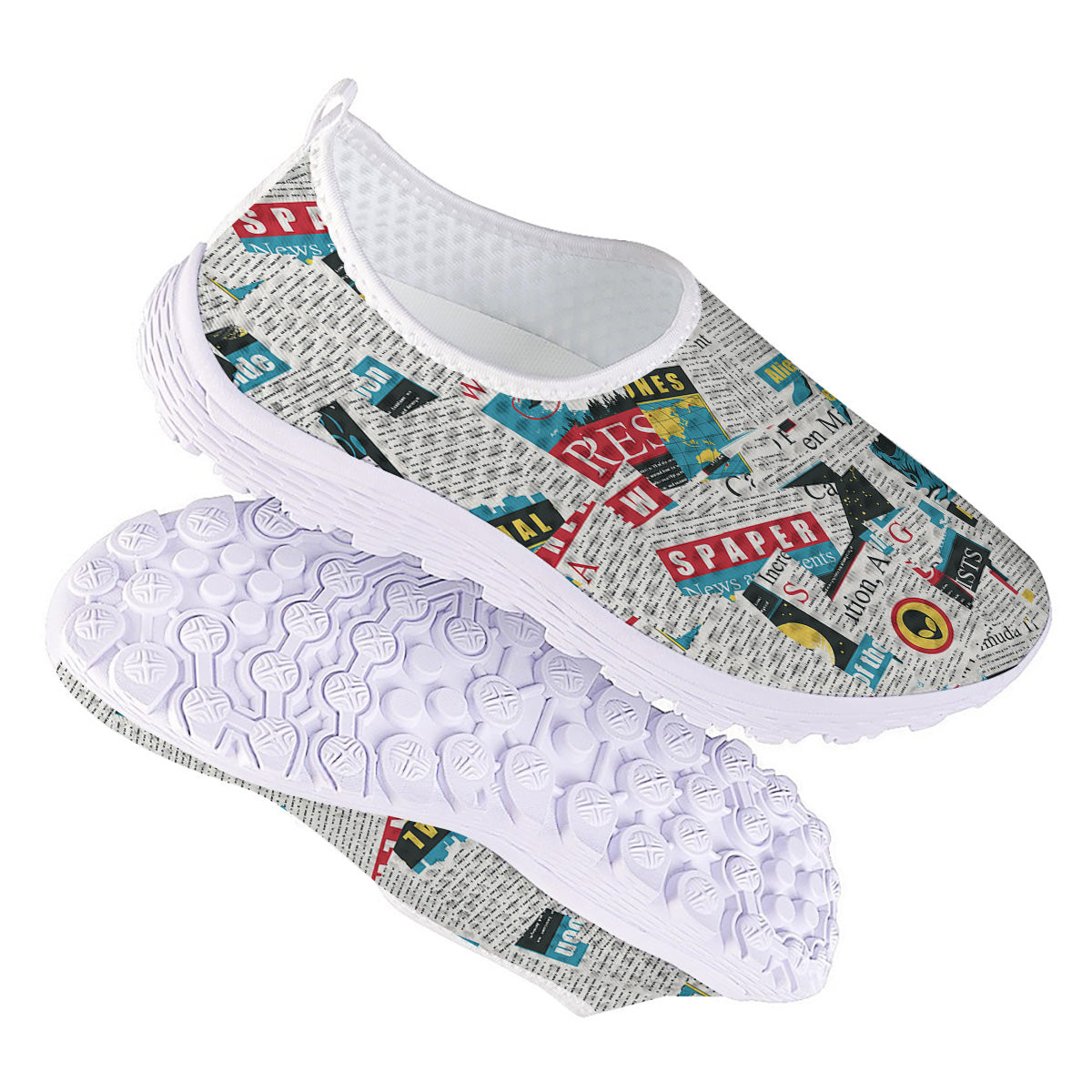 Newspaper Clippings On Aliens Topic Colorful Print Pattern Nurse Shoes