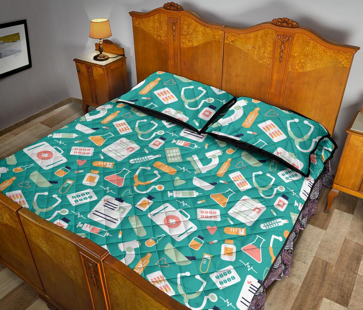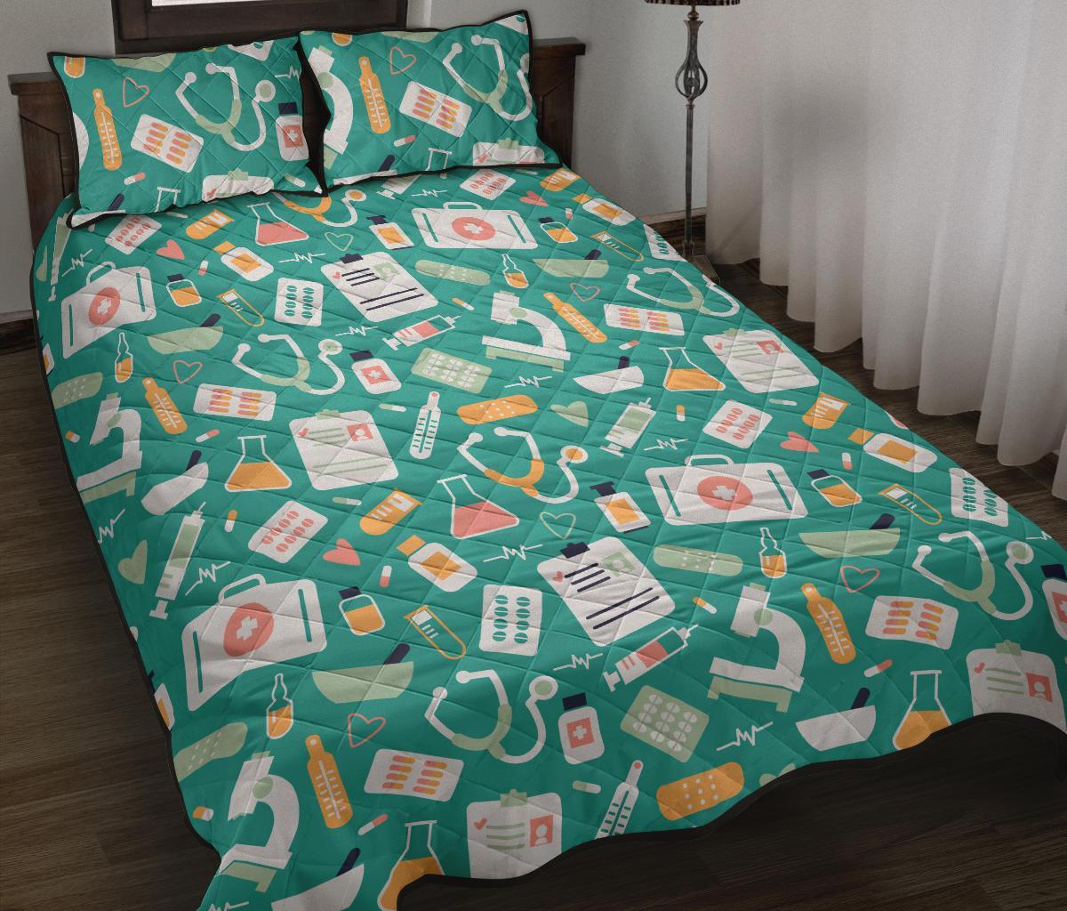 Nurse Pattern Print Bed Set Quilt